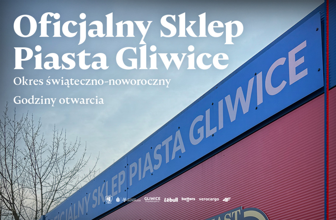 Informujemy, że w związku ze zbliżającymi się Świętami Bożego Narodzenia i przerwą świąteczną nastąpią zmiany w funkcjonowaniu Oficjalnego Sklepu Piasta Gliwice.