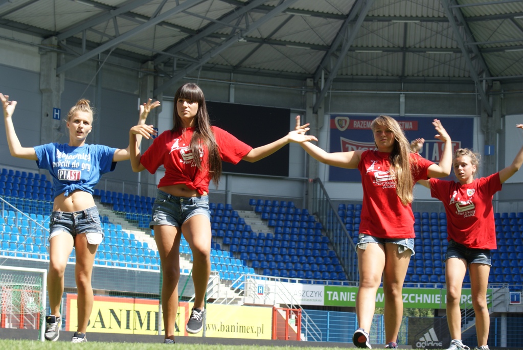 Fabryka Tańca jest w trakcie tworzenia klipu promocyjnego i w materiale znają się ujęcia wykonane na Stadionie Miejskim. - Z Piastem współpracujemy już od prawie dwóch lat i stadion jest dla naszej szkoły bardzo ważny. Nie wyobrażałam sobie, że przygotowywany przez nas klip mógłby nie zawierać scen nakręconych właśnie tutaj. Już wkrótce na spotkaniach T-Mobile Ekstraklasy fani niebiesko-czerwonych będą mogli oglądać na żywo nasze tancerki w akcji. Nie tylko piłkarze będą zatem dostarczać emocji zgromadzonym na stadionie kibicom. - mówi Magdalena Wrońska, właścicielka Fabryki Tańca.