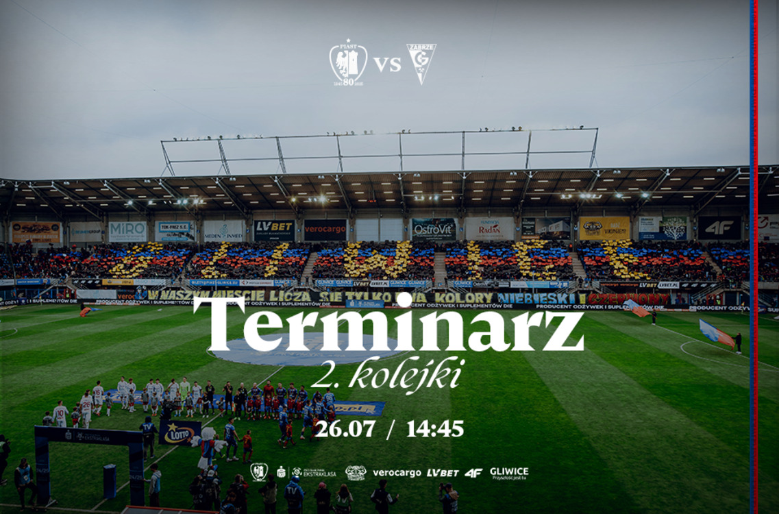 Poznaliśmy szczegółowy termin pierwszego spotkania Piasta Gliwice na #Okrzei20 w sezonie 2025/26 PKO Bank Polski Ekstraklasy. Starcie z Górnikiem Zabrze zaplanowano na sobotę, 26 lipca na godzinę 14:45.
